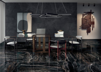 Innenfliesen aus Marmoroptik-Feinsteinzeug, hergestellt von COTTO D’ESTE.