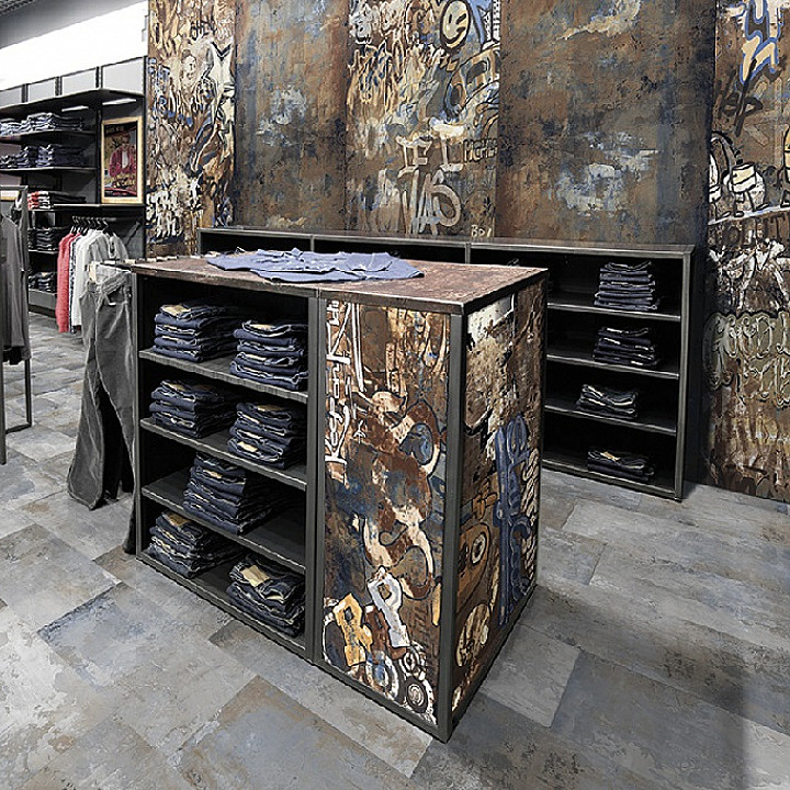 Betonoptik Feinsteinzeugsprodukt für den Innenbereich, erhältlich in vier verschiedenen warmen und einladenden Farben. Es eignet sich ideal zur Verkleidung der verschiedenen Arten von Wohn- und Geschäftsräumen.