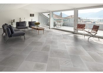Feinsteinzeug Fliesen mit Betonoptik für den Innenbereich, hergestellt von SINTESI.