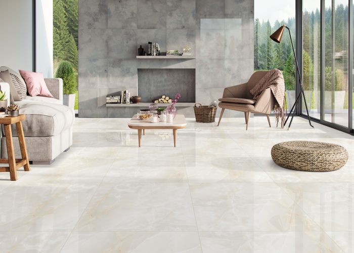 Rektifizierte Marmoroptik Boden- und Wandfliesen aus massenfarbenem Feinsteinzeug mit polierten Oberflaeche.