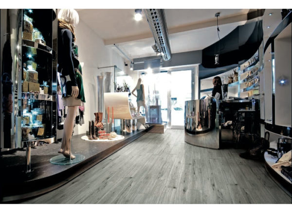 Feinsteinzeug Fliesen in Holzoptik geeignet für den Außenbereich, dank ihrer rauen und frostsicheren Oberfläche; kombinierbar mit dem entsprechenden Produkt für Innenbereich.