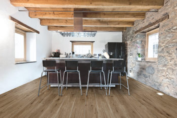 Feinsteinzeug Fliesen in Holzoptik geeignet für den Außenbereich, dank ihrer rauen und frostsicheren Oberfläche; kombinierbar mit dem entsprechenden Produkt für Innenbereich.