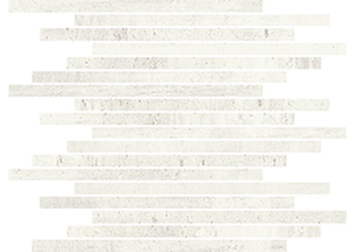 Mosaik mit einer besonderen Streifenform, das mit dem Grundprodukt als Dekoration kombiniert werden kann; ideal als Wandelag, aber auch als Fußbodenbelag.