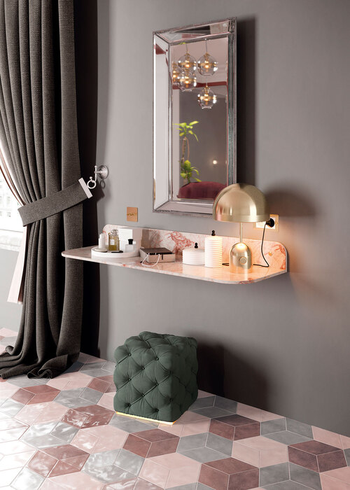 Sechseckige Feinsteinzeugfliesen für Böden und Wände im Innenbereich
