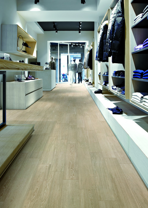 Feinsteinzeug in Holzoptik mit matter Oberfläche, das sich dank seines warmen und einladenden Stils perfekt für die Verlegung in jeder Art von Innenumgebung eignet.