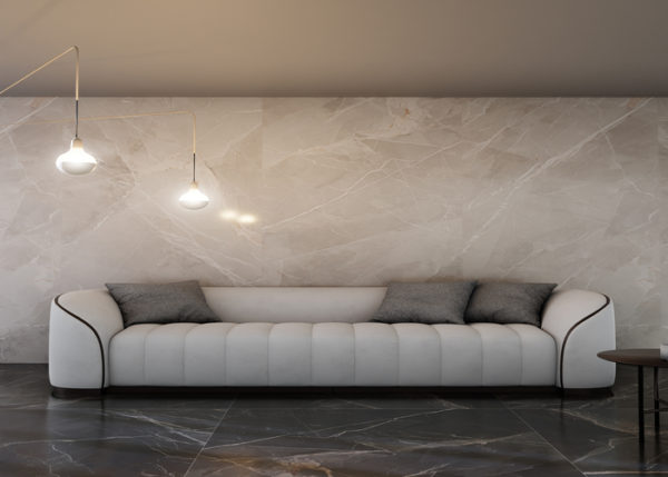 Feinsteinzeugfliesen in Marmoroptik mit matter oder glänzender Oberfläche in elegantem und modernem Stil, perfekt für die Verlegung in allen Arten von Innenräumen, von Wohnungen bis hin zu Laden und Restaurants.