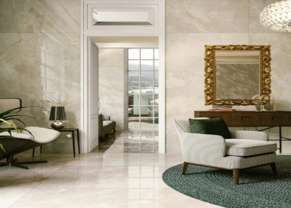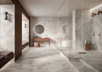 Indoor floor and wall tiles in marble-effect porcelain stoneware, produced by CASALGRANDE PADANA.
