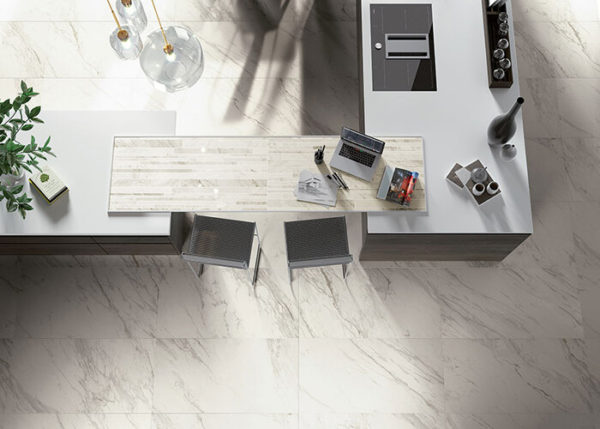 An eternal material which turns its back on ephemeral fashion to leave a lasting mark. The delicate veining of “the splendid stone”, is enhanced by the most modern ceramic technology to create a modern decorative motif characterised by the interruption of its lines in the brick effect.