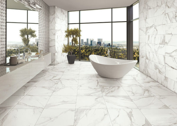 Carrelage de sol et mural en grès cérame imitation marbre teint dans la masse, brillant ou matt.