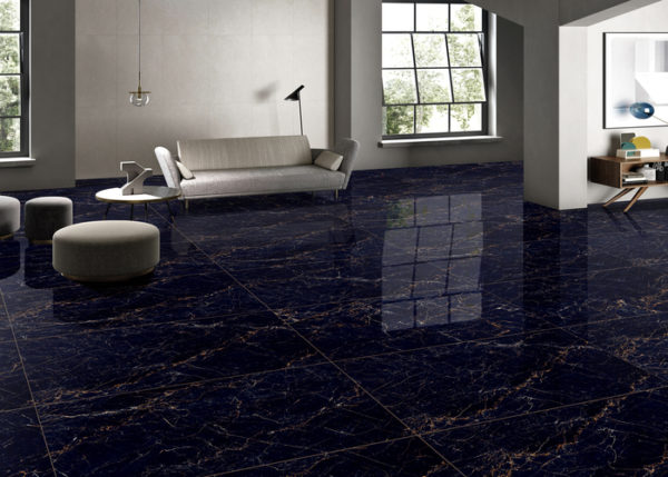 Carrelage en grès cérame effet marbre avec une surface brillante, parfait pour une installation dans tout type d’environnement intérieur, grâce à son style élégant et raffiné.