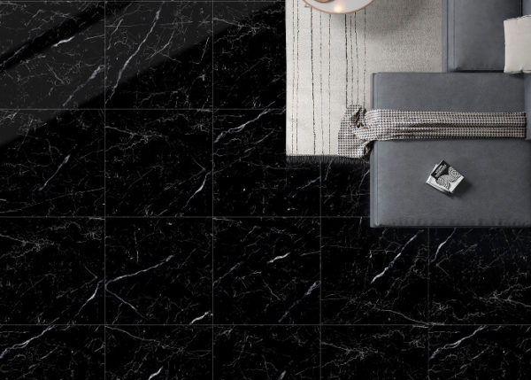 Carrelage effet marbre en grès cérame avec surface brillante, parfait pour une installation dans tout type d’environnement intérieur, grâce à son style élégant et raffiné.