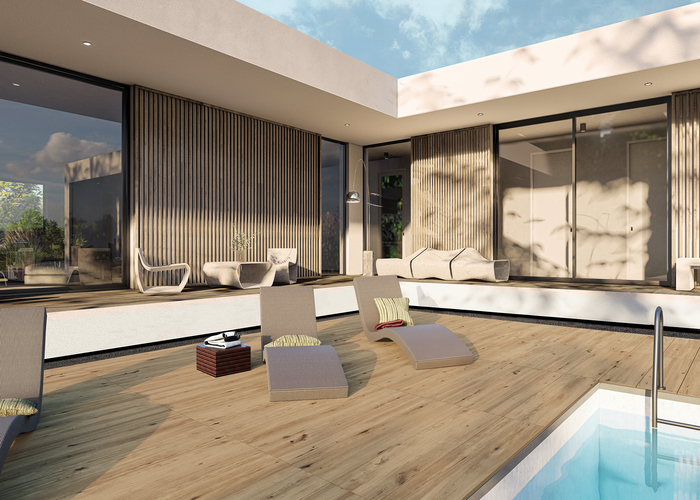 Carrelage intérieur et extérieur pour sols et murs en grès cérame imitation parquet, produit par ENERGIE KER.