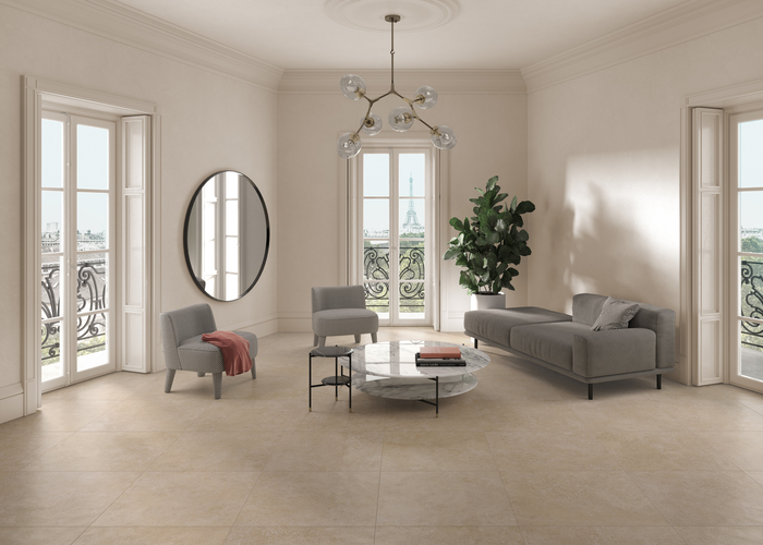 Carreaux en grès cérame effet pierre avec surface matte ou silk, parfaits pour une installation dans tout type d’environnement intérieur, grâce à leur style moderne.