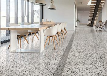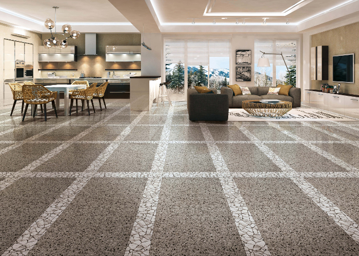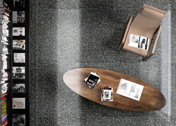 Carreaux en grès cérame effet marbre/gravier pour intérieurs et revêtements extérieurs, produits par CIR.