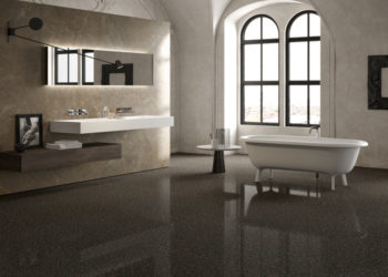 Piastrelle per pavimenti e rivestimenti in gres porcellanato tutta massa effetto pietra, prodotte da ARIOSTEA.