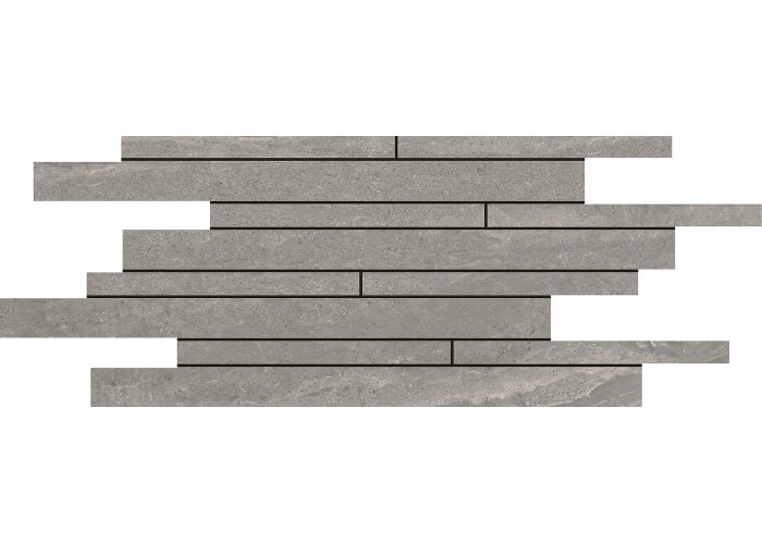 Mosaico irregolare composto da listelli di diverso formato, abbinabile al prodotto base come decoro, ideale per l’utilizzo come rivestimento. Disponibile sia con superficie matt sia con superficie lappata.