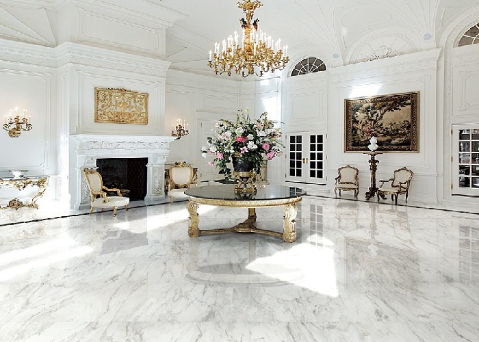 Piastrelle per interni in gres porcellanato effetto marmo, prodotte da ALFALUX.