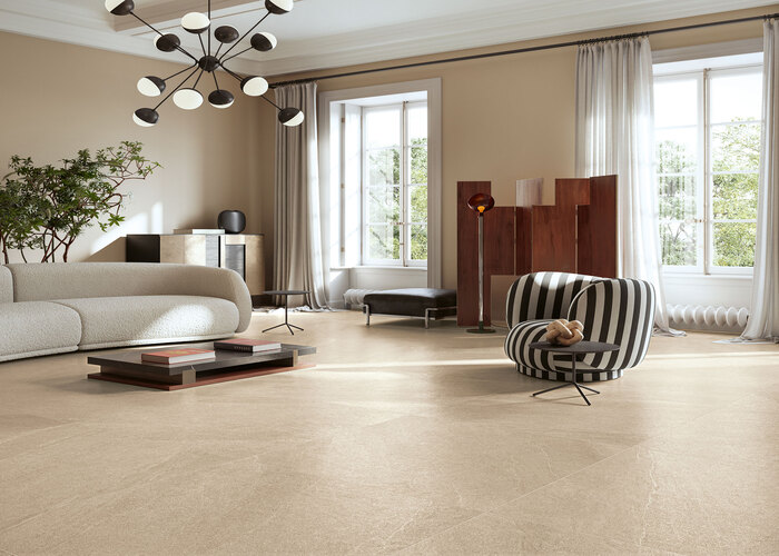Piastrelle per pavimenti e rivestimenti interni ed esterni in gres porcellanato effetto pietra, prodotte da SERENISSIMA.
