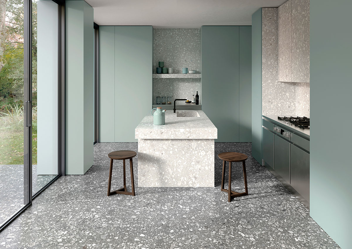 Con la nuova collezione Gréstone, Saime Ceramiche fa rivivere l’intramontabile motivo a terrazzo: un componimento equilibrato di design, colore e vitalità. Gréstone è la pietra di Saime Ceramiche caratterizzata da un aspetto unico e variegato, con tonalità di grigio e inclusioni di ciottoli tipiche della roccia conosciuta come Ceppo di Grè. La nuova interpretazione regala una texture equilibrata e neutra che rende le superfici piacevolmente irregolari e naturali.
