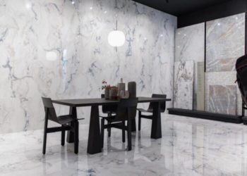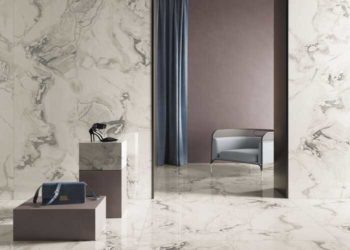 Piastrelle per pavimenti e rivestimenti interni in gres porcellanato effetto marmo, prodotte da KEOPE.