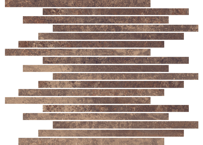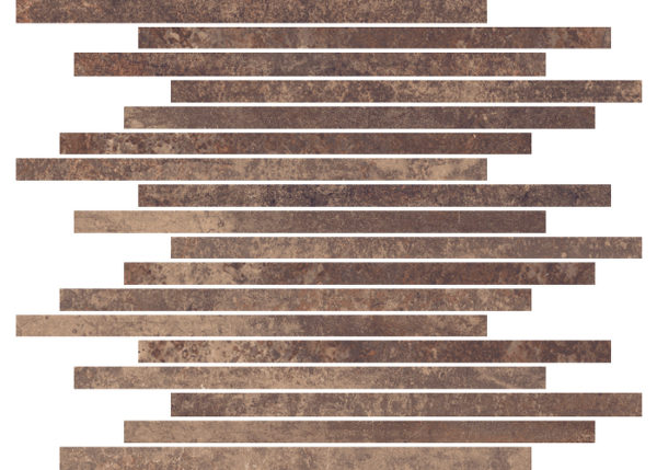 Mosaico dalla particolare forma a listello, abbinabile al prodotto base come decoro, ideale per l’utilizzo come rivestimento, ma anche come completamento della pavimentazione.