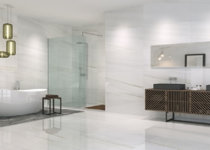 Piastrelle in Gres Porcellanato Effetto Marmo con superficie lucida o naturale dallo stile elegante e moderno, perfette per l’installazione in qualsiasi tipo di ambiente interno, dalle case private a locali e ristoranti.