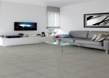 Bodenfliesen mit Betonoptik, koordiniert zu dem entsprechenden Wandbelag, sie sind für alle Zimmer des Hauses geeignet.