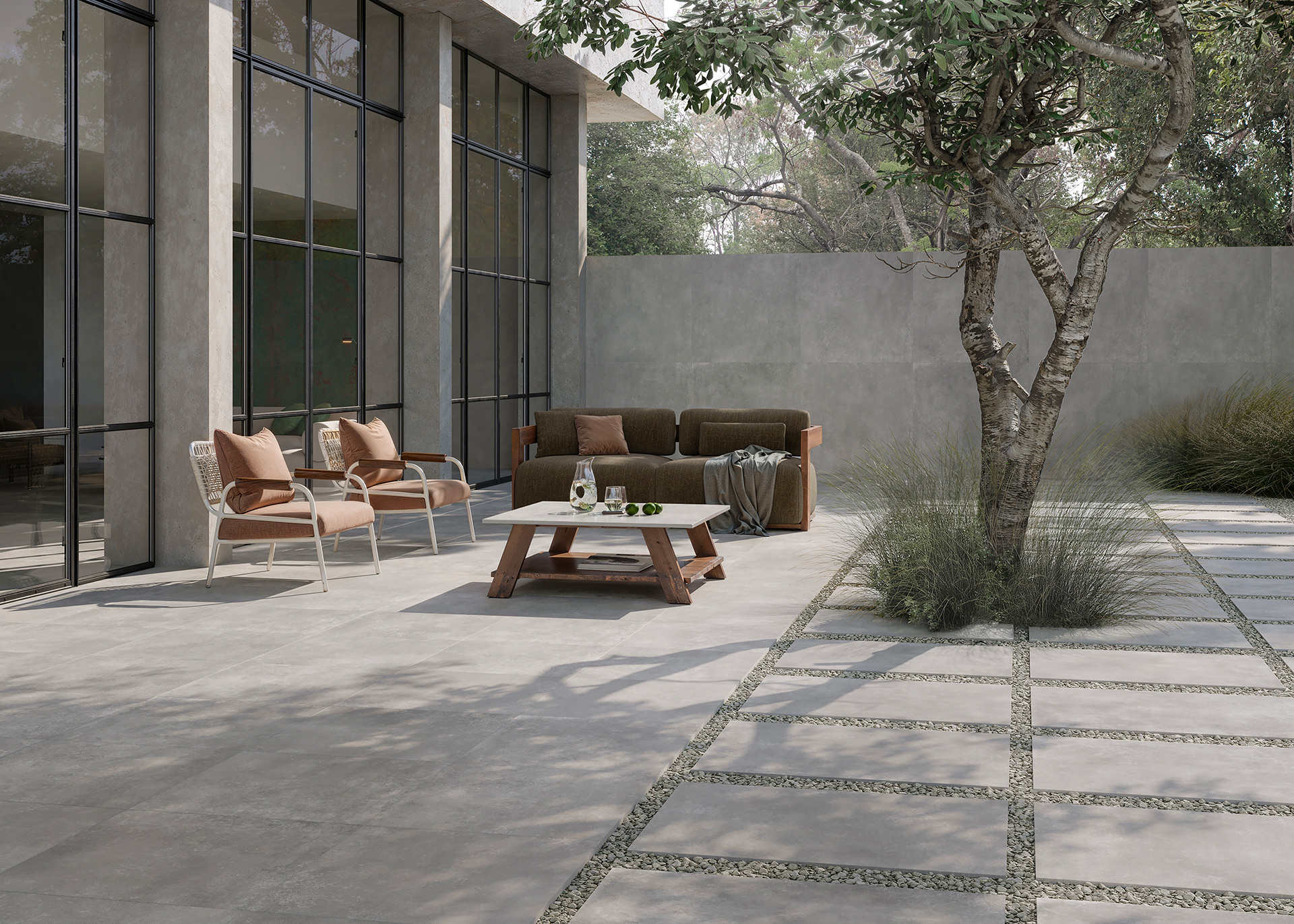 gres porcellanato effetto cemento con spessore 20 mm per esterni