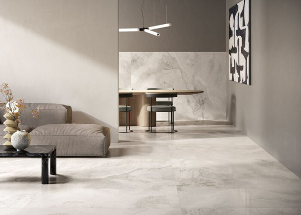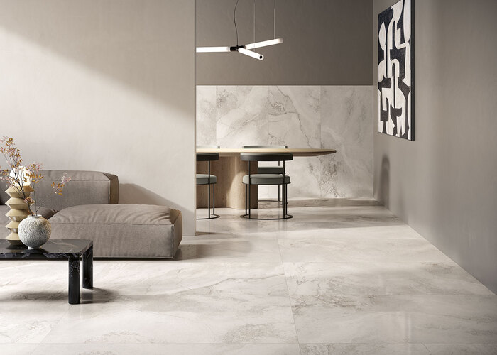 Piastrelle per pavimenti e rivestimenti interni ed esterni in gres porcellanato effetto marmo, prodotte da COEM.