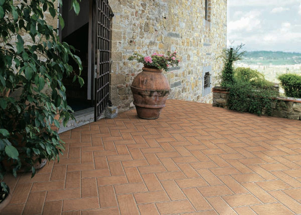 Piastrelle in gres porcellanato effetto cotto, pensate per ambienti interni dallo stile antico e rustico.