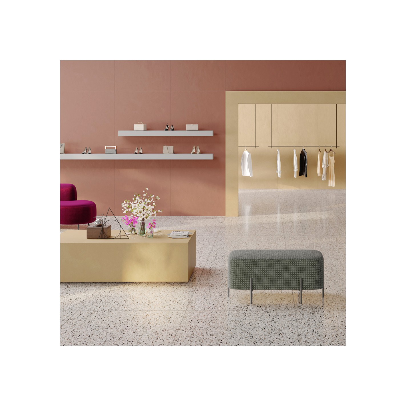 Gres porcellanato effetto cemento per interni, disponibile in dieci diversi colori caldi e accoglienti, ideale per rivestire con fascino i diversi tipi di ambienti residenziali e commerciali.