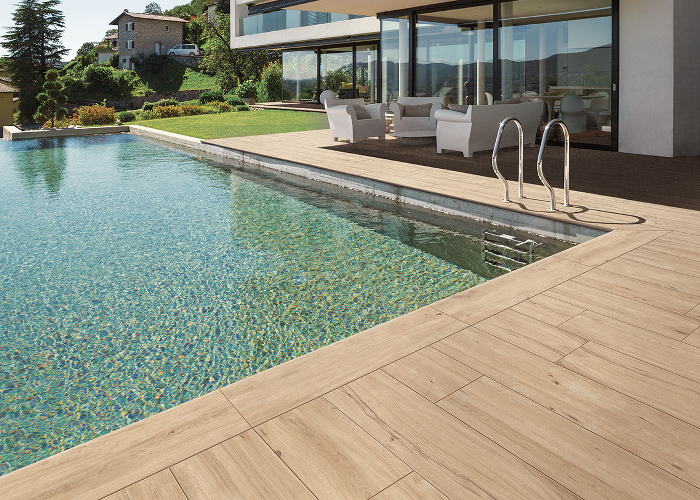 Piastrelle in gres porcellanato effetto legno utilizzabili per rivestire qualsiasi tipo di superficie esterna, abbinabili anche al corrispondente prodotto da interno.